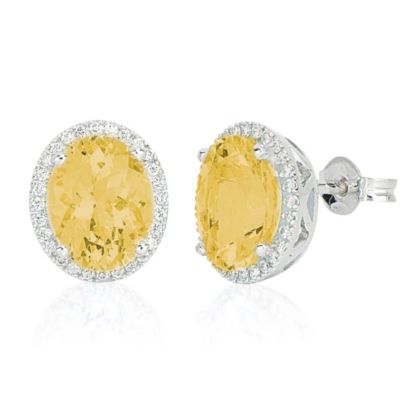 Orecchini Artlinea in oro bianco 18 kt, con diamanti e pietra preziosa centrale -OD479/CI-LB