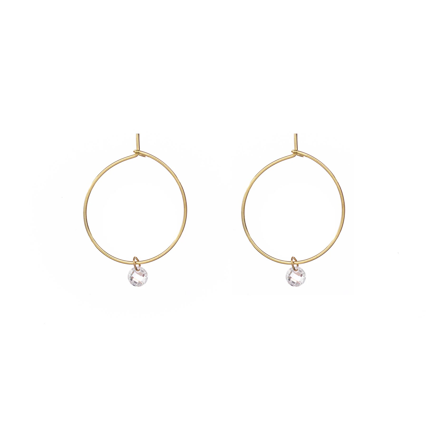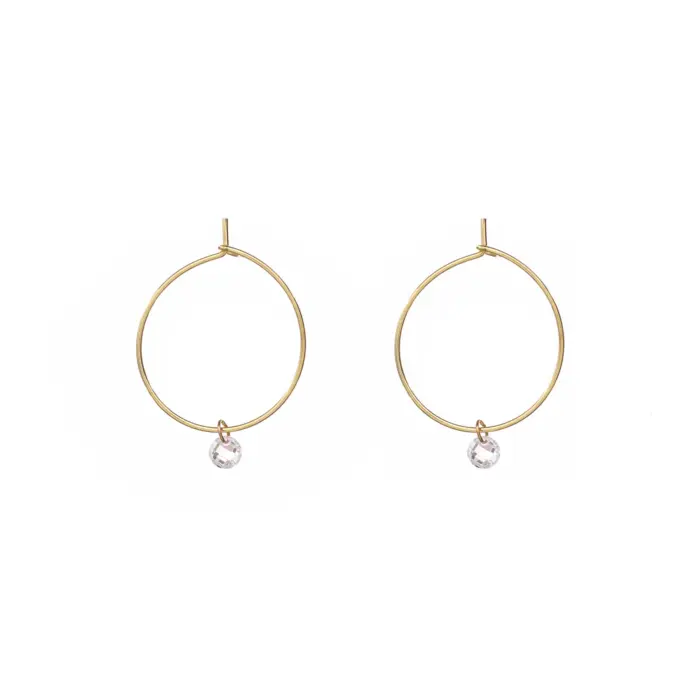 Orecchini a cerchio Alisia in argento 925 placcati oro con zircone pendente.