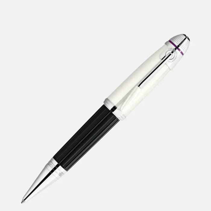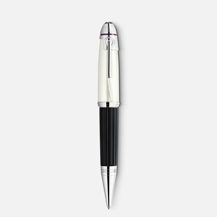 Nel 2022, Montblanc rende omaggio a uno dei musicisti più celebri del XX secolo, universalmente considerato uno dei chitarristi elettrici più importanti nella storia della musica popolare: Jimi Hendrix. In pregiata resina, il colore bianco sporco del cappuccio e il suo motivo inciso si ispirano a una delle tracolle delle chitarre indossate da Hendrix, mentre il corpo nero è impreziosito da un elegante motivo che ricorda un pedale WAH. La forma della clip finitura platino ricorda la leva del vibrato di una chitarra elettrica. L’emblema Montblanc sulla parte superiore del cappuccio è in pregiata resina.